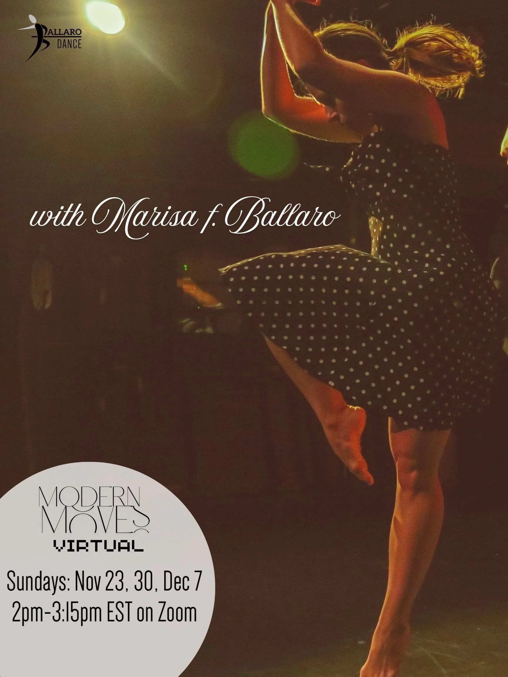 Whether you’re looking to ground yourself in dance technique, challenge your creativity, or simply have fun, this class offers a supportive space to grow, express, and play. With stellar instruction and real-time feedback from Marisa f. Ballaro, you'll build community, and discover new ways to move and feel.