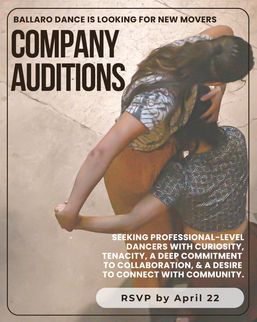 We are looking for dancers who want to do this work with us—artists who value collaboration, curiosity, and community as much as they value craft.